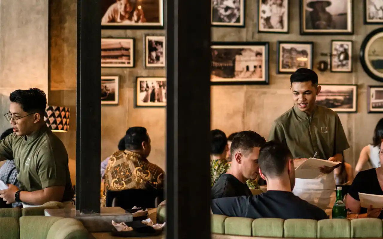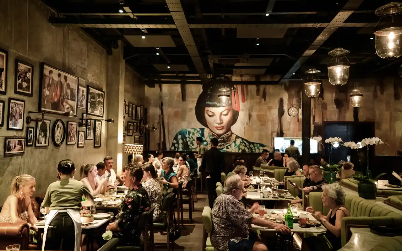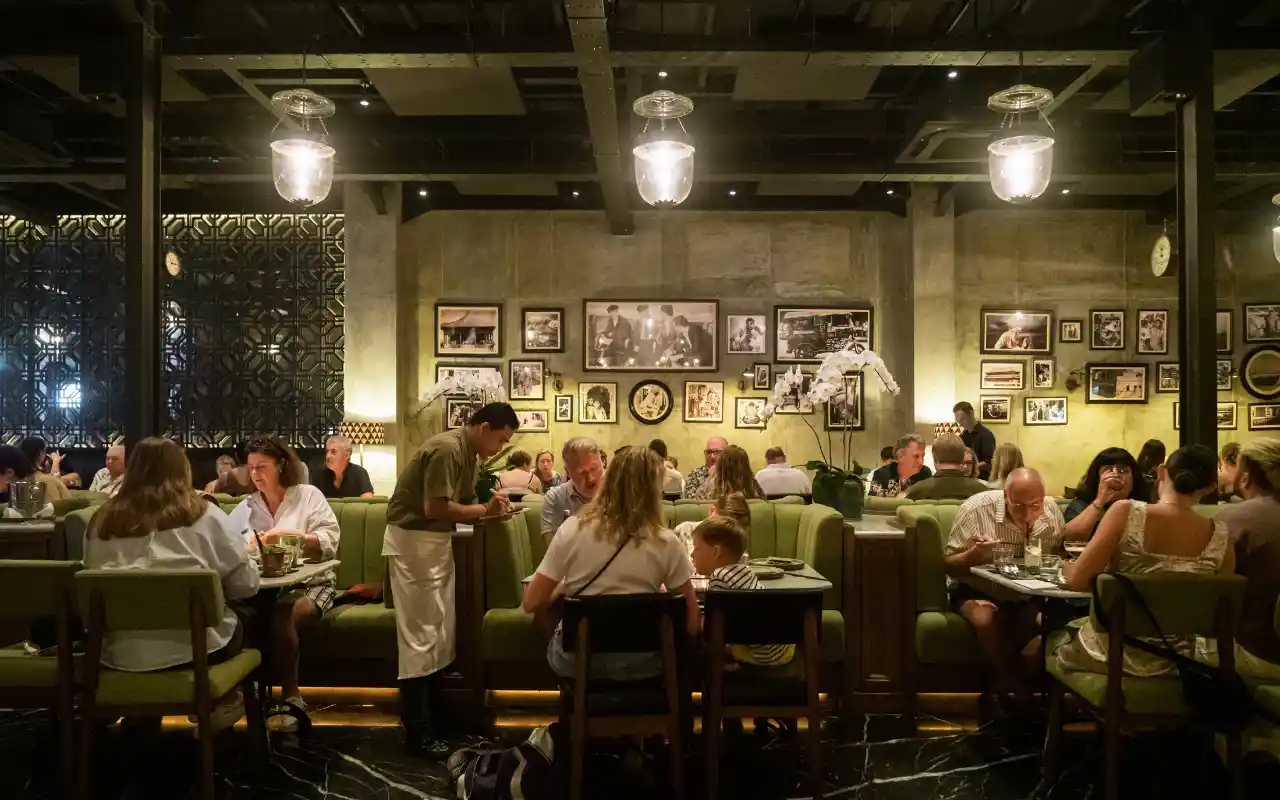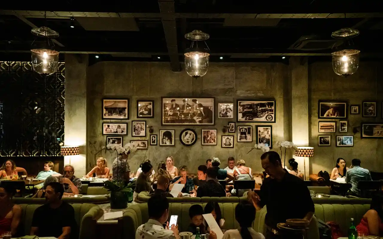Widely regarded as the best Asian restaurant in Seminyak, Mama San blends rich flavours, bold design, and timeless charm. With over a decade of history, the tried-and-true Bali icon has welcomed generations of family by stitching a patchwork in seamlessly melding the lively essence of street food with a refined dining experience that offers a menu that spans the rich culinary landscapes of South East Asia. The restaurant’s interior, inspired by the opulence of 1920s Shanghai, features plush green banquette seating, dark timber walls, and elegant chandeliers, composing a sophisticated yet warm atmosphere.